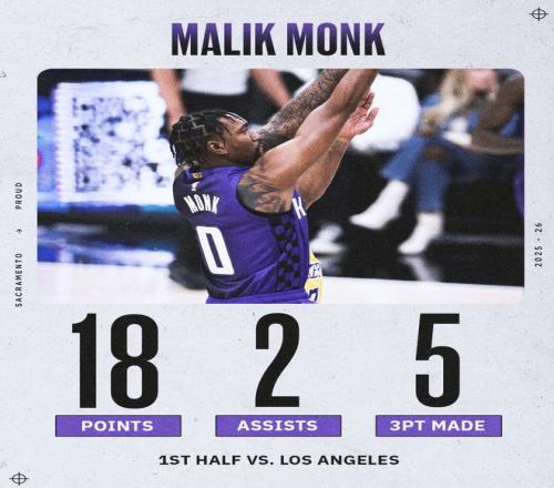 众所周知蒙克本赛季在国王的阵容中已经不算主力,他此前被连续DNP了7场比赛,但对阵火箭一战他拿到15分,此役面对老东家湖人他第二节的表现那叫一个炸裂,单节7中6+三分6中5+罚球1中1拿到18分1助攻,湖人替补4人半场合计只有4分。